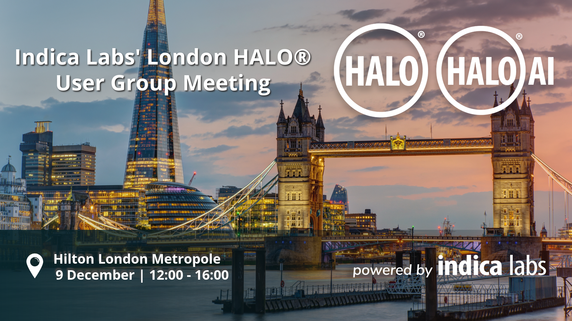 9 December 2025 | Indica Labs is pleased to announce our London HALO® User Group Meeting at Hilton London Metropole on 9 December from 12:00