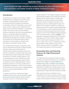 In this application note, we walk through the steps and options in the HALO High Dimensional Analysis module workflow and demonstrate how this module enables researchers to interactively explore highly multiplexed datasets and extract biologically meaningful insights.